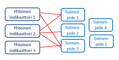 Kuva 1: Yhteisten indikaattorien ja toimenpiteiden kytkökset yleisellä tasolla