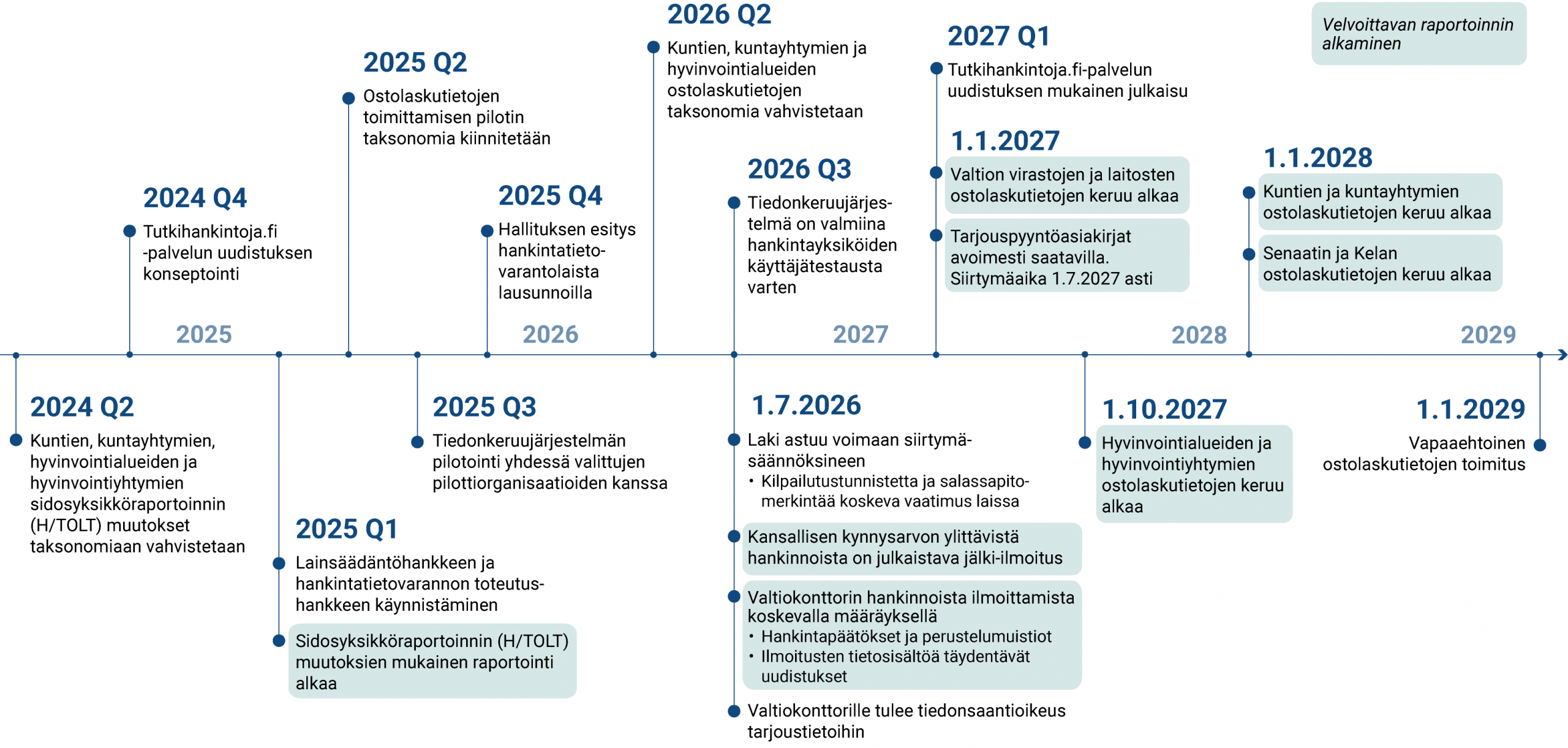 • Lokakuu 2025 – helmikuu 2026: ostolaskutietojen toimitus Valtiokonttorille 2-3 kuukaudelta