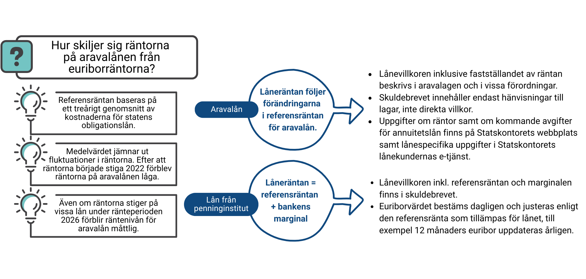 De ändringar som är möjliga är ändringar av amorteringsraternas storlek och lånetiden samt sänkning av lånets ränta.